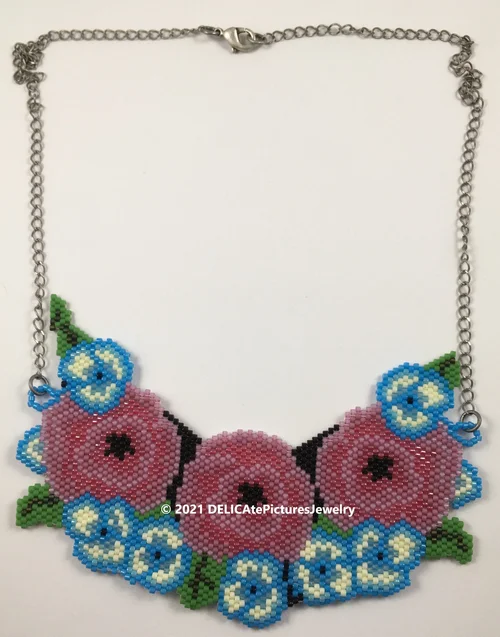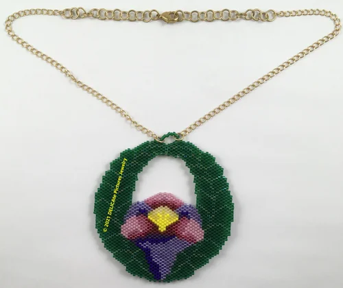 This gallery features Miyuki Delica glass cylinder beaded picture style necklaces and pendants that are floral themed. Each piece is for sale unless otherwise noted. Prices are negotiable. Inside, you’ll find roses, daffodils, fuchsias, poppies, poinsettias, sunflowers, pansies, irises, and tulips.